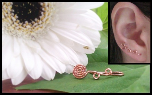 Deze speciale oorbellen (ook wel ear sweeps genoemd) werken als een clipje, en liggen als het ware op je oor. Ik maakte ze in verschillende vormen, dit roosje sprak me erg aan. Tijdens het maken van de tutorial voor deze vorm, bedacht ik me dat het roosje -met wat kleine aanpassingen- ook prima op andere manieren gebruikt kon worden. Bijvoorbeeld als schakel in een ketting.