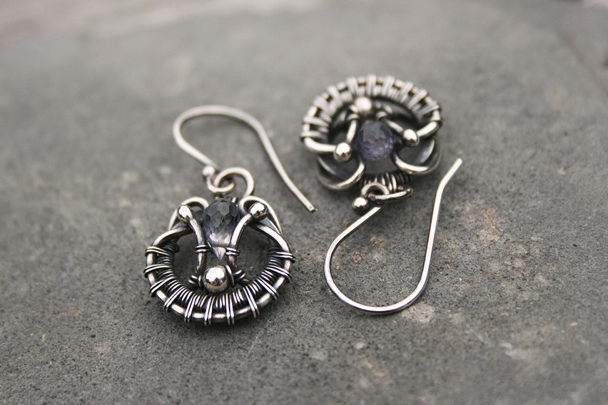 Draad is geweldig om ‘koud’ mee te werken; je kunt het buigen, in lusjes draaien, hameren, afknippen, weven, noem maar op! Maar de stijl die ik het mooist vind, incorporeert ook andere technieken, zoals solderen, uitgloeien en bolletjes smelten. Dit zijn dan ook de technieken die ik momenteel het meest gebruik naast het gewoonlijke draadwerk. Hoewel ik meestal gebruik maak van zilver in draadvorm, heb ik ook een klein voorraadje plaatzilver liggen waar ik zo nu en dan wat mee doe. Verder gebruik ik heel veel (kleine) edelsteentjes, meestal in de vorm van gefacetteerde of ronde kralen.