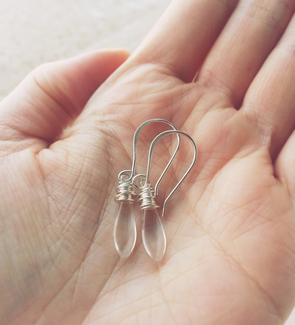 silverdropearringshand