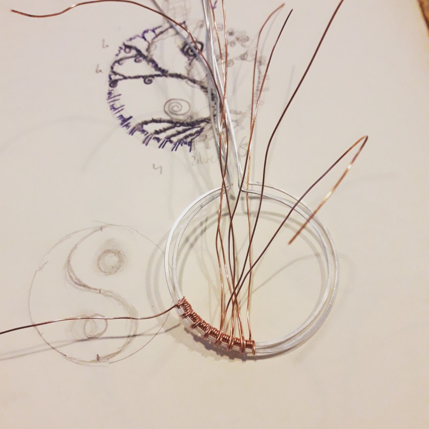 Na wat schetsen en ideeën uitwisselen besloot de klant voor de versie van enkel metaal. En stiekem houdt ik daar wel erg van, de kleuren van zilver en koper brengen zelf al het contrast.
