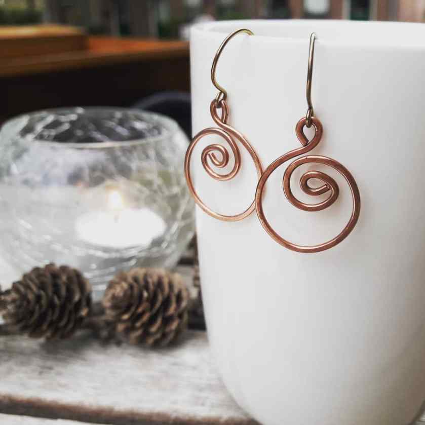 Deze koperen spiraal oorbellen zijn lekker simpel en leuk. De oorhaakjes zijn van niobium, een metaal dat ook geschikt is voor gevoelige oren.