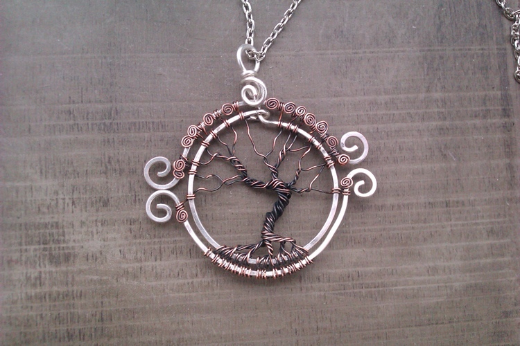 Twee bijzondere symbolen samen, de yin yang en de levensboom. Yin yang: de balans en wisselwerking tussen tegenpolen, de aanwezigheid van duister in licht en andersom. De levensboom: groei, geworteld zijn, meegroeien in de cyclus van het leven. Ik vind het beide prachtige symbolen en toen de vraag kwam of ik ze kon combineren in één sieraad was ik meteen enthousiast. Ik had net besloten geen opdrachten meer aan te nemen want mijn zwangerschapsverlof kwam eraan en ik had het al druk genoeg. Maar dit verzoek kon ik niet laten liggen. Na wat schetsen en ideeën uitwisselen besloot de klant voor de versie van enkel metaal. En stiekem houdt ik daar wel erg van, de kleuren van zilver en koper brengen zelf al het contrast. De hanger was wat lastiger uit te werken dan ik dacht, maar na een paar proefversies die in de prullenbak belandden had ik door hoe ik deze hanger goed in elkaar kon zetten. De oxidatie brengt de textuur en het contrast extra naar boven.