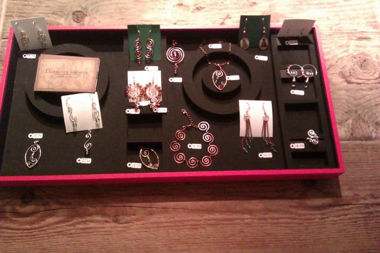 Supertrots, dat ben ik! Dat de sieraden uit de collectie Spiralen tussen alle andere prachtige en diverse kunstwerken in de boetiek Kunst in Perspectief liggen. Ik ging er van het weekend even langs om de sieraden netjes op te poetsen en eventjes wat extra foto’s te nemen. Terwijl ik er was bracht een jongen zijn moeder mee naar de winkel, want hij wilde ook eens kiezen waar ze naar binnen gingen. Helemaal terecht ;) Vervolgens was zijn moeder eigenlijk nog blijer met de keuze dan haar zoon, met al die prachtige spullen en overal wat te zien. Nog veel mooier in het echt. :) Deze mooie spullen vind je hier nog tot januari, daarna wisselt de collectie en wordt het werk van andere kunstenaars hier tentoongesteld en verkocht.